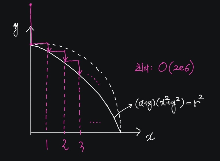 따라서 a를 순회하면서 b는 감소하면서 같이 순회할 수 있으므로, O(1e6)에 해줄 수 있습니다.