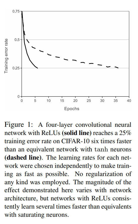 ReLU함수는 전통적인 활성화함수(시그모이드, 하이퍼탄젠트)에 비해 빠른 속도와 성능을 자랑한다.