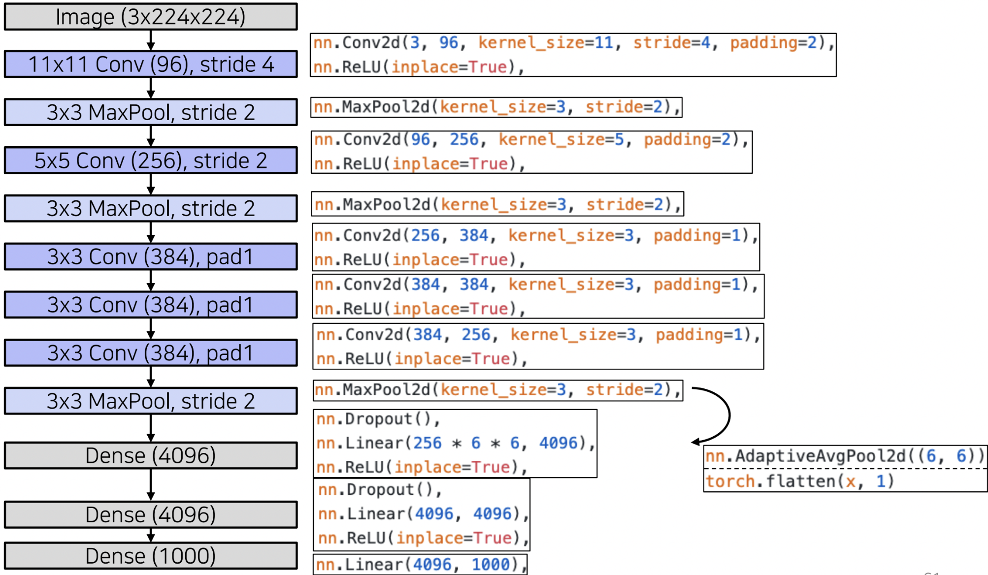 AlexNet은 6천만개의 파라미터로 이루어져 있다. 그래서 데이터셋도 충분해야 과적합을 방지할 수 있다.