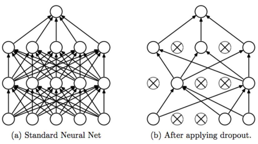 50%의 확률로 노드의 output을 0으로 만들어 순전파, 역전파에 계산되지 않도록 배제시키는 기법이다.