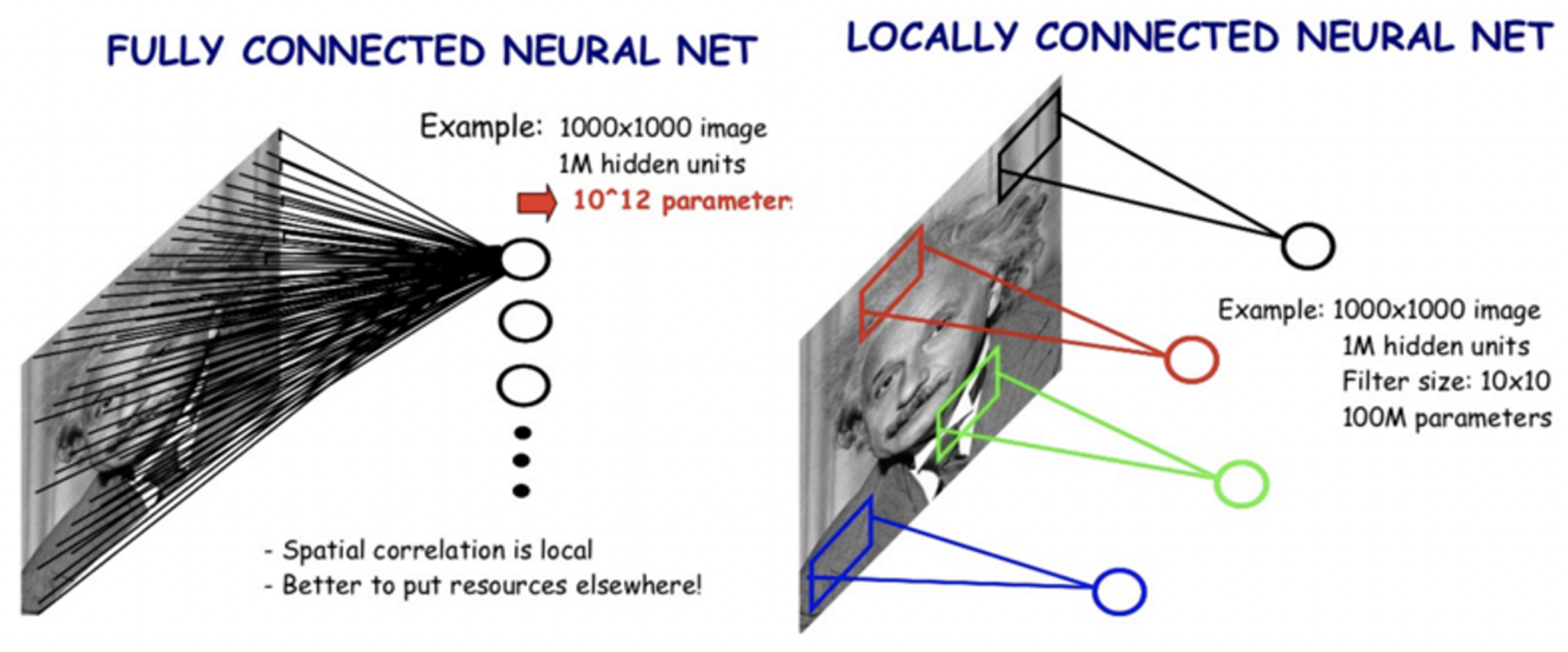 CNN은 기존의 Fully Connected 모델과 달리 필터를 통해 지역적인 특성을 뽑아서 더 적은 파라미터로