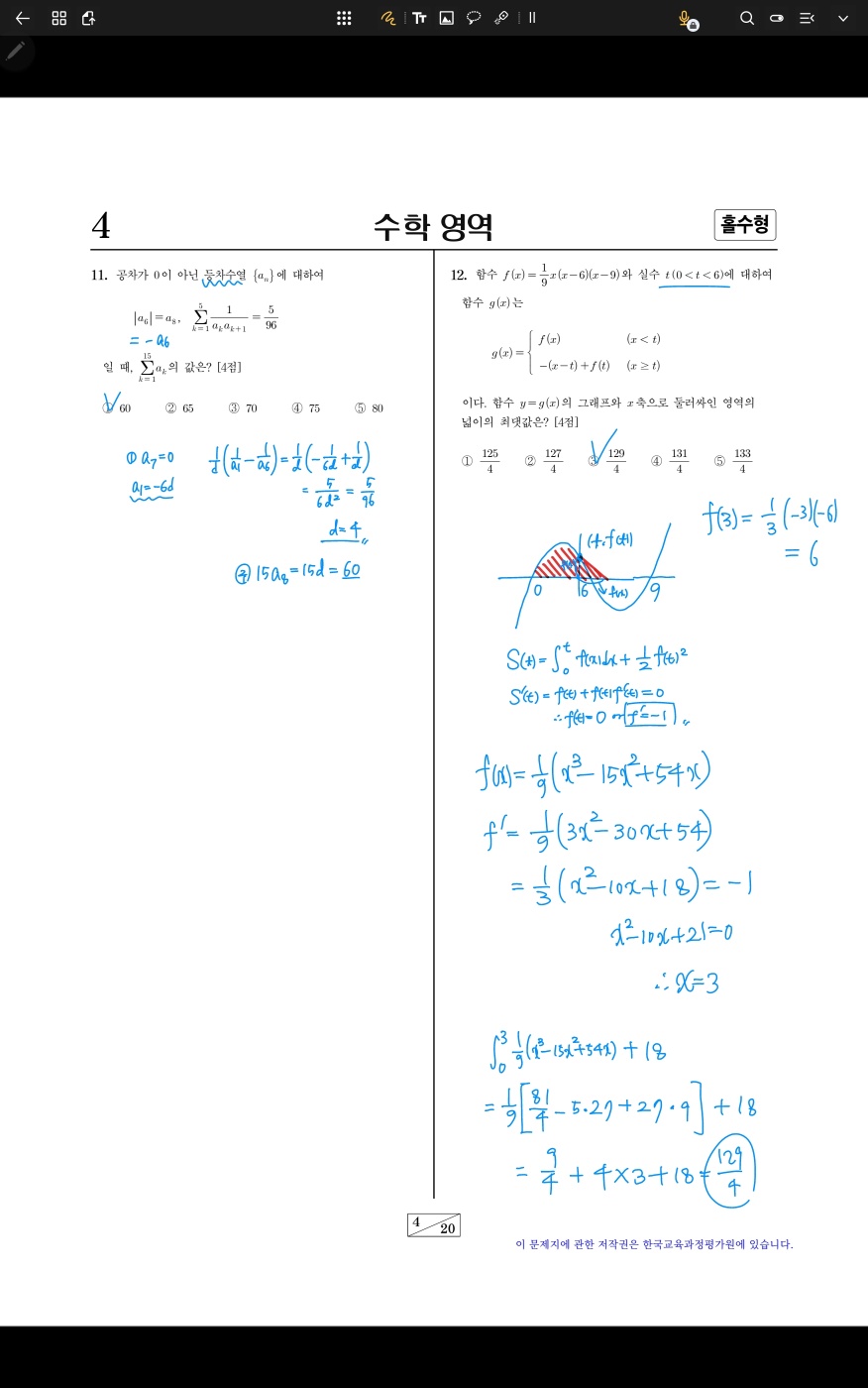 #12. 식을 f(t)로 두고 세운 다음에 대입하는게 좋다. 계산은 항상 마지막에 정리되는거 보고 하자.