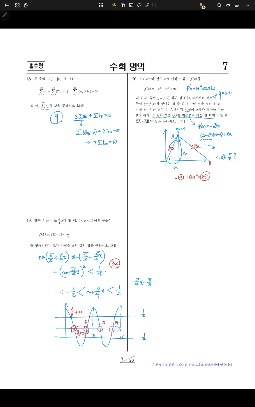 #19. cos로 바꿔도 되고, 그냥 sin함수가 x=2 대칭이니까 금방 알 수도..