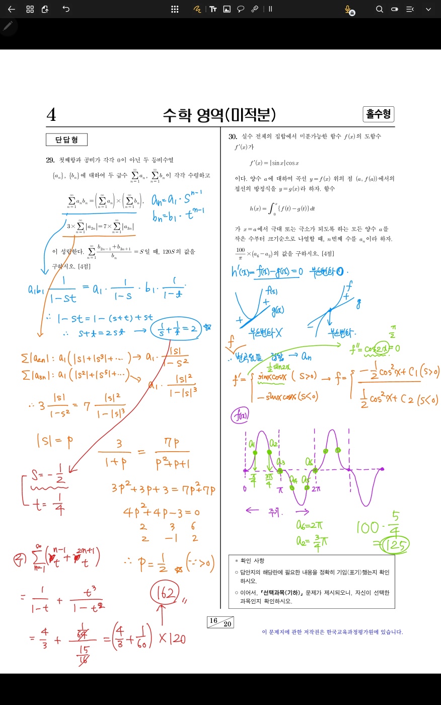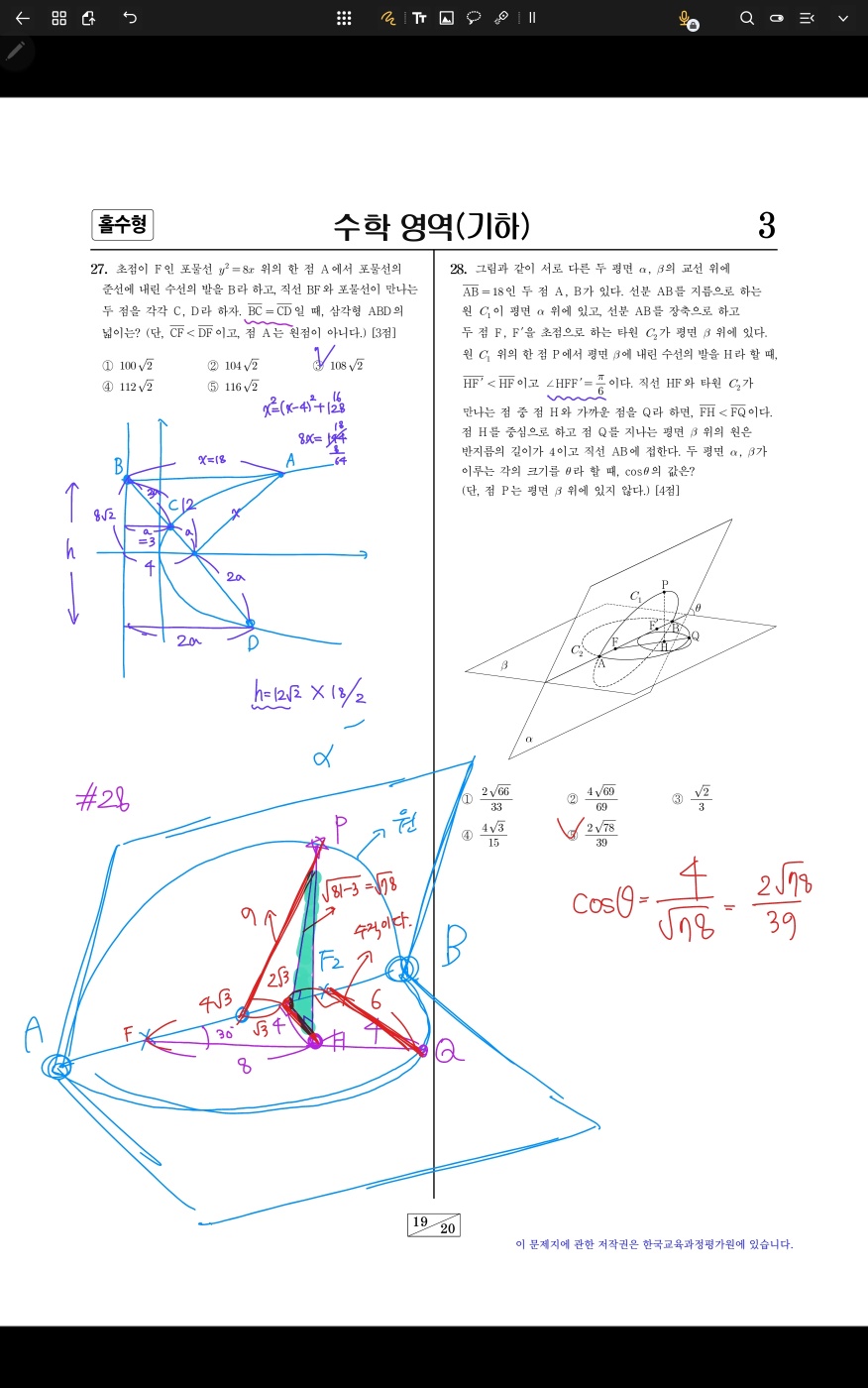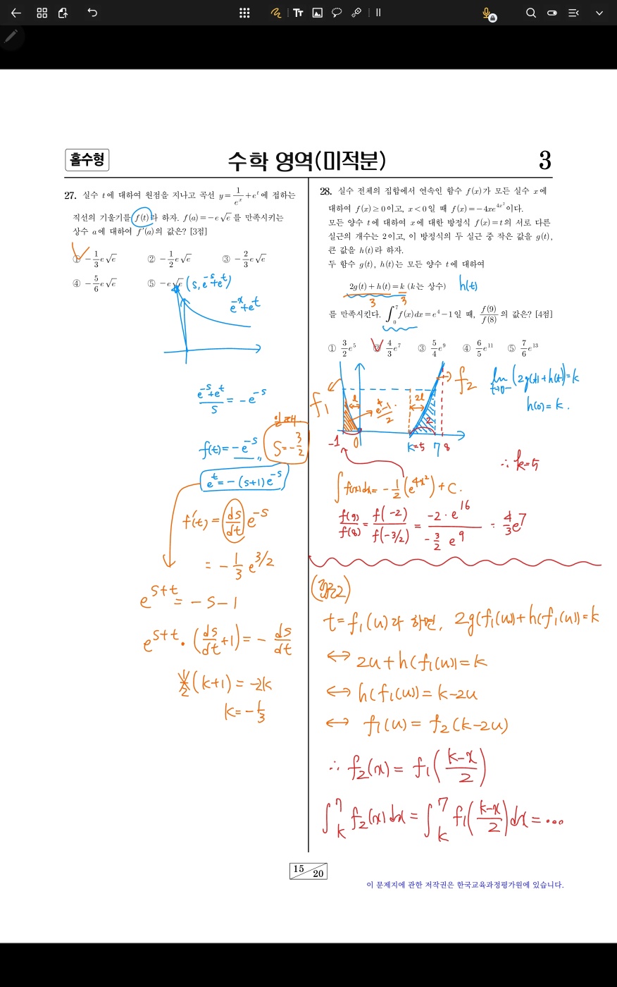 #28: 28번은 역함수 적분을 많이 풀어봐야 짧게 끝낼 수 있음.