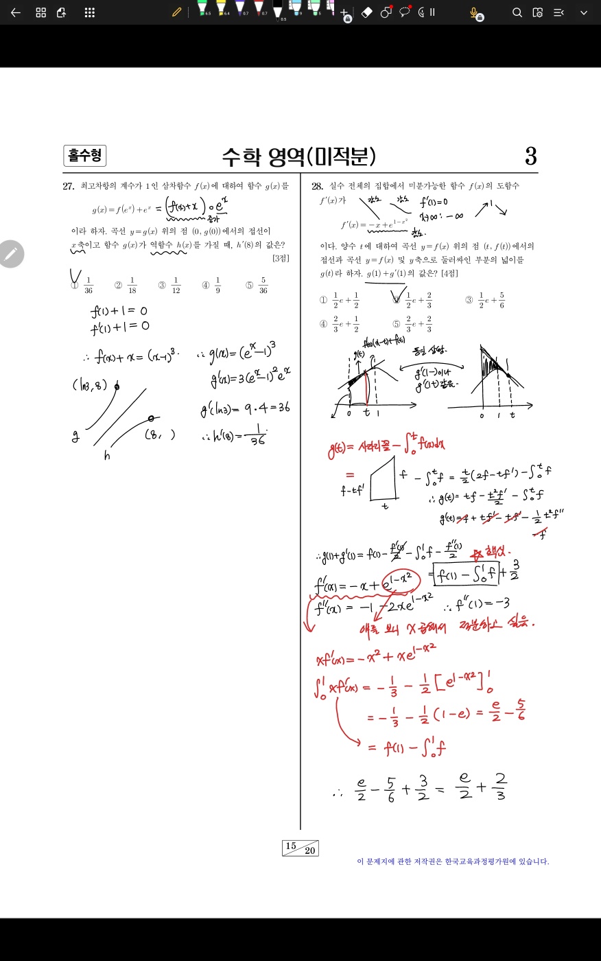 #27: x축이라는 조건에서 식 2개를 뽑고 역함수를 갖는다는 조건으로 3차식을 결정할 수 있음.