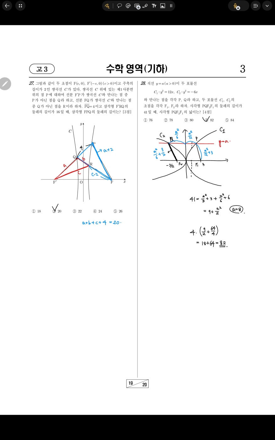 제2코로 FP길이를 구할 수 있다. 이후엔 포물선 성질로 조금의 계산만 해주면 된다.